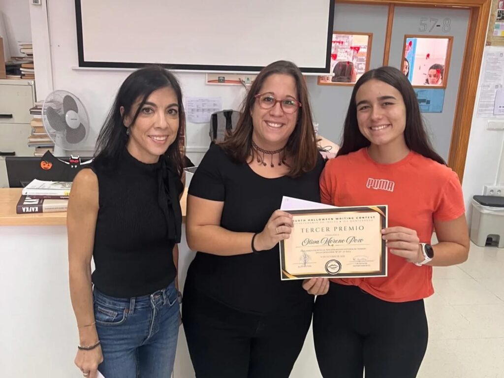 Hoy, 31 de octubre, ha tenido lugar, en la biblioteca del centro, la entrega de premios a los ganadores del IV concurso de relatos de terror organizado por el departamento de inglés con motivo de la celebración de Halloween. ¡Enhorabuena a los ganadores y a todos los participantes por su buen trabajo y creatividad! Happy Halloween!